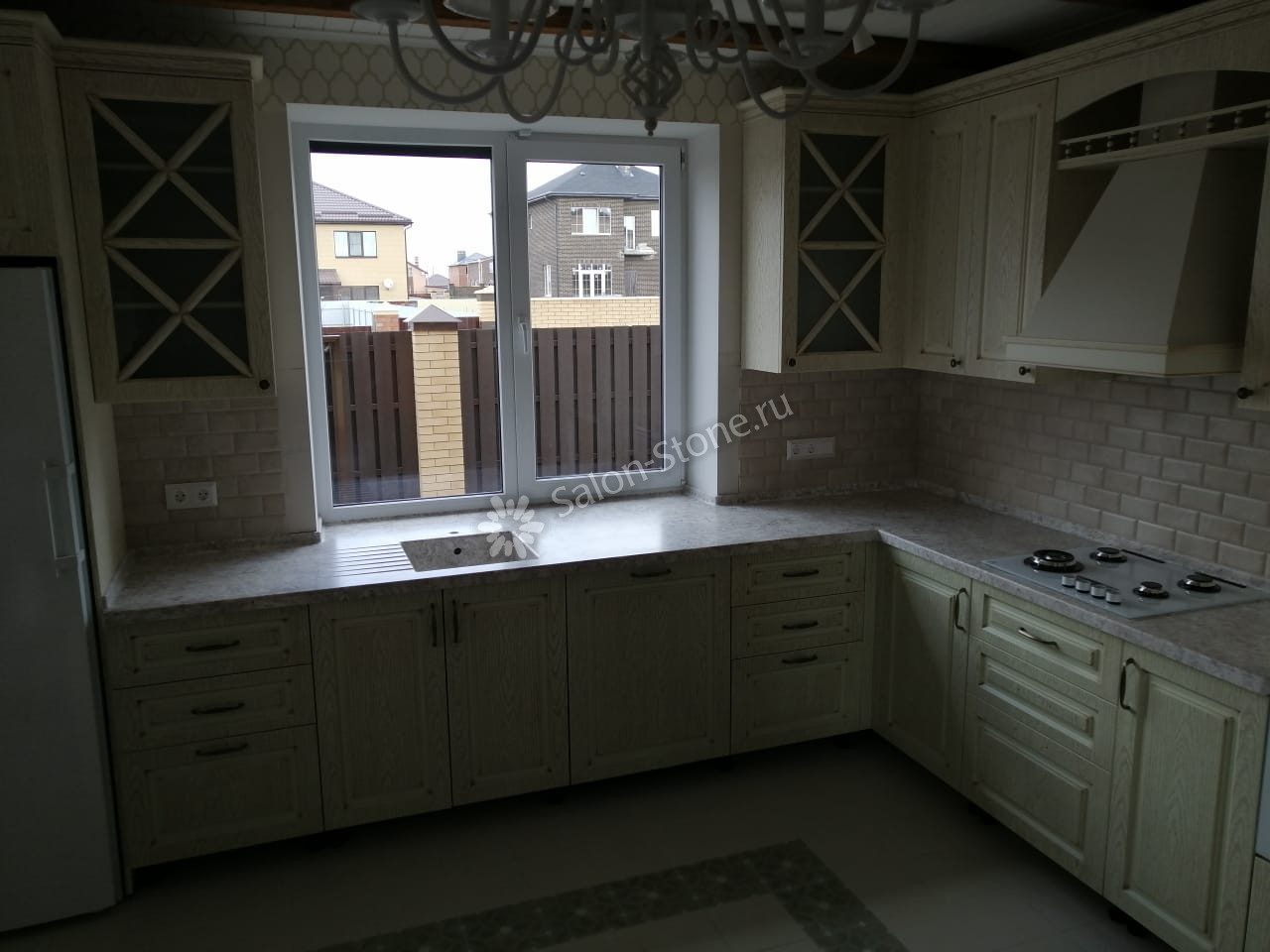 Кухонная столешница со встроенным подоконником из акрилового камня Akrilika DA064 Veronika